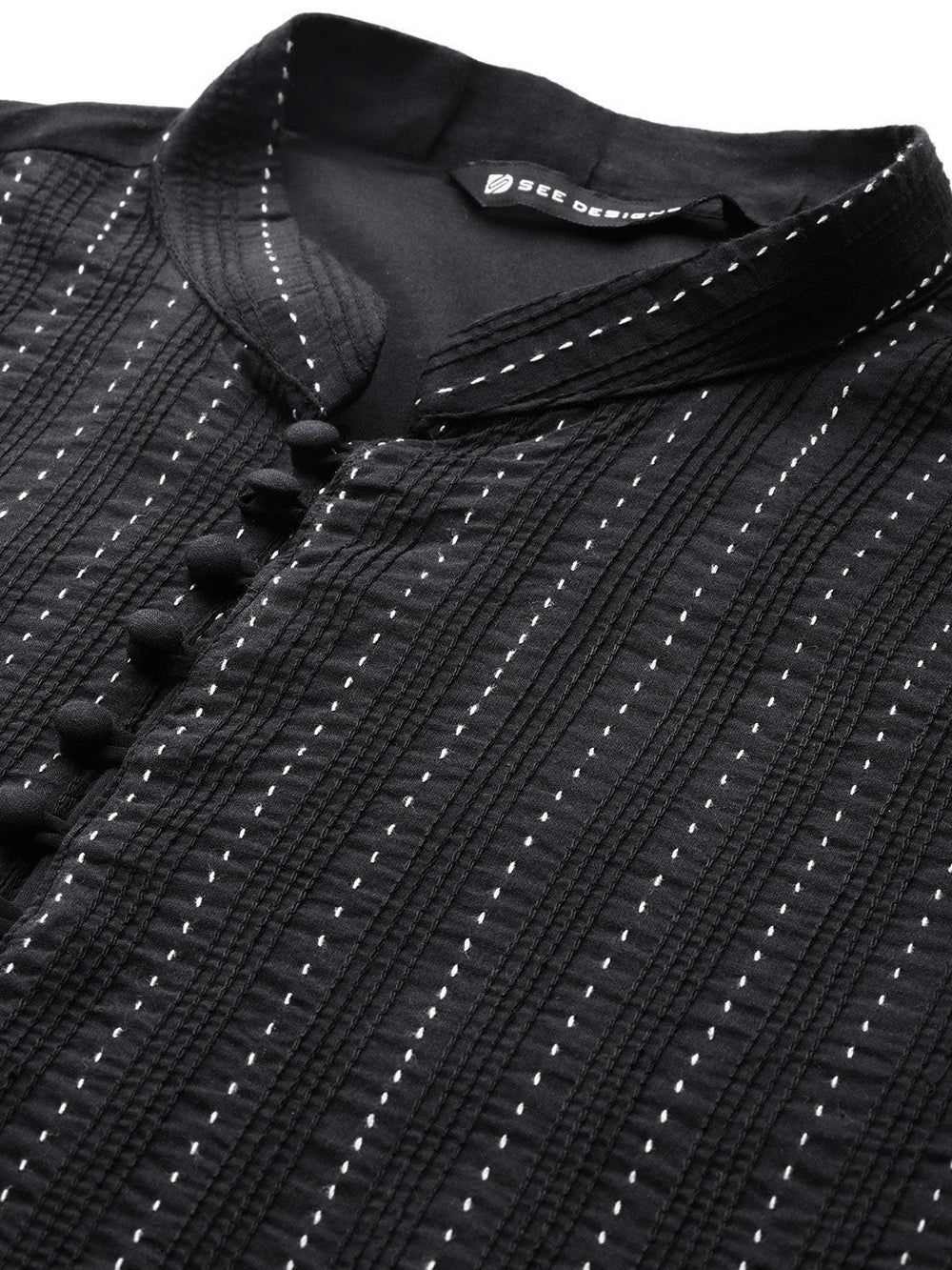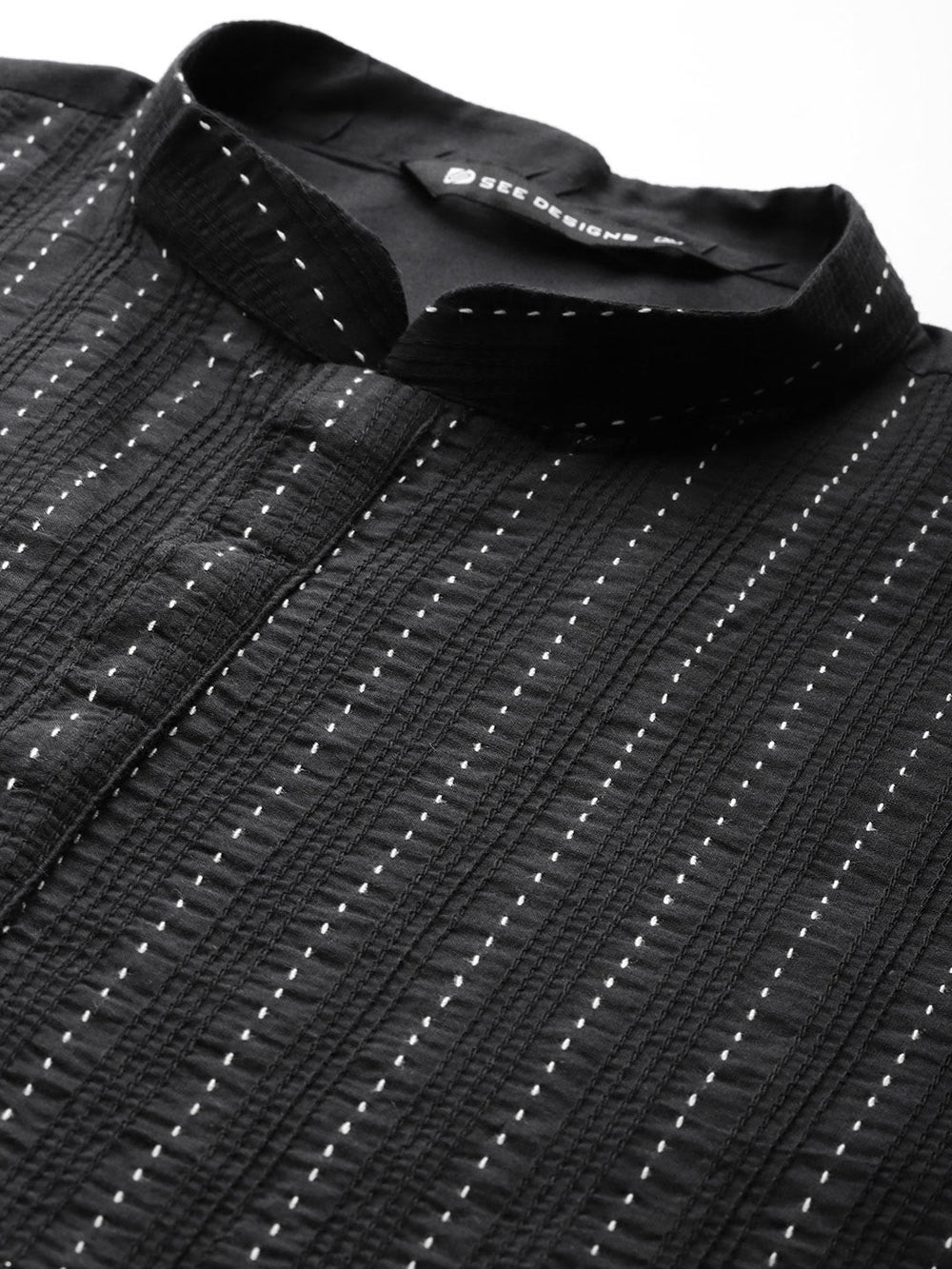 Black kurtas have always been a classic choice, and our collection brings together styles that work for every occasion. A plain black kurta is perfect if you like a clean and understated look, while soft cotton versions make everyday wear easy and comfortable. For weddings and festive evenings, nothing beats the bold appeal of a Pathani kurta in black. At See Designs, we focus on fabrics that feel good on the skin and cuts that are easy to carry. You’ll find shorter styles for casual outings as well as longer, traditional designs that never go out of fashion. This collection is designed to give your wardrobe a piece you can return to again and again.