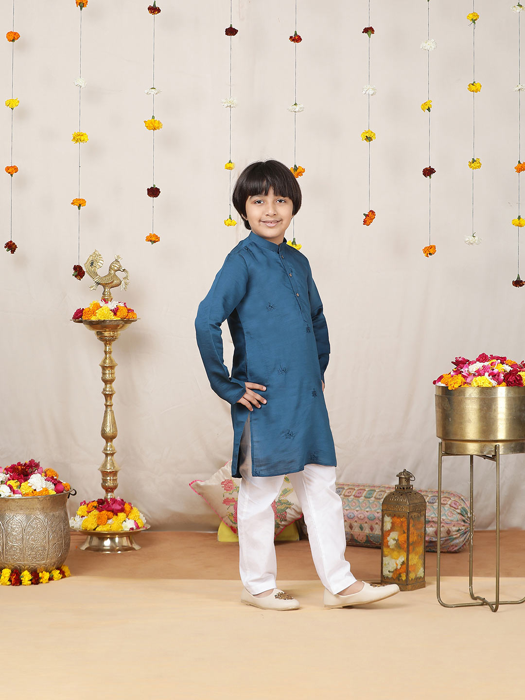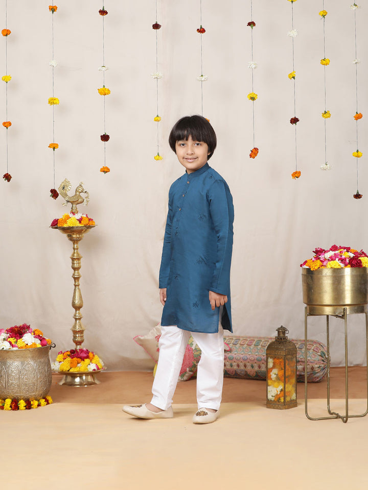 | Description | Introducing our Motifs Embroidered Chanderi Silk Straight Kurta has a Embroidered Nack Paired with Pyjama, featuring a stylish Mandarin collar, a sleek straight hemline, and side slits |