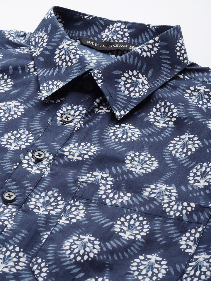 Men Blue Dandelion Floral Print Pathani kurta with pyjama