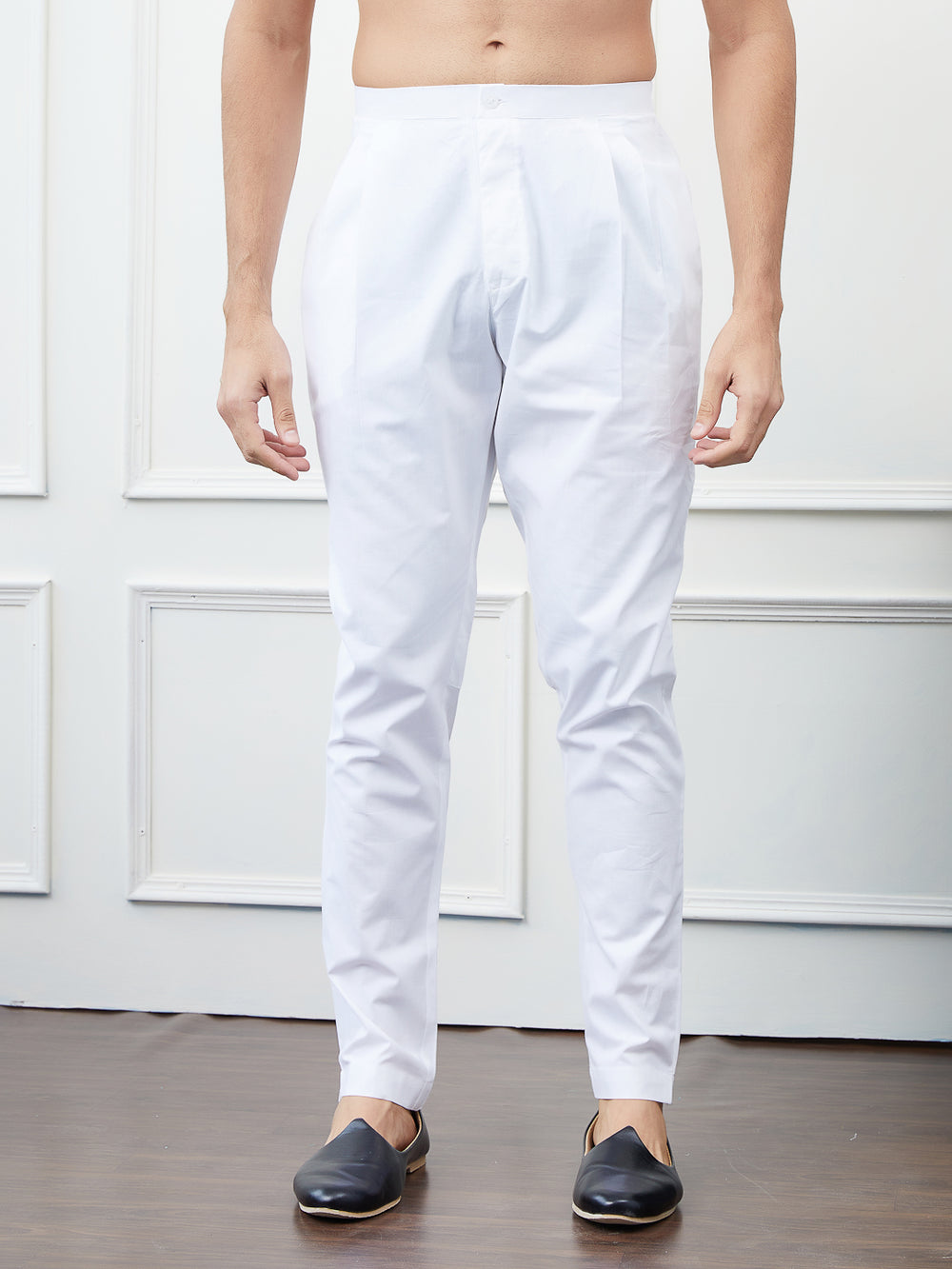 Combo Pack of 2: White & Cream Solid Cotton Pyjamas
