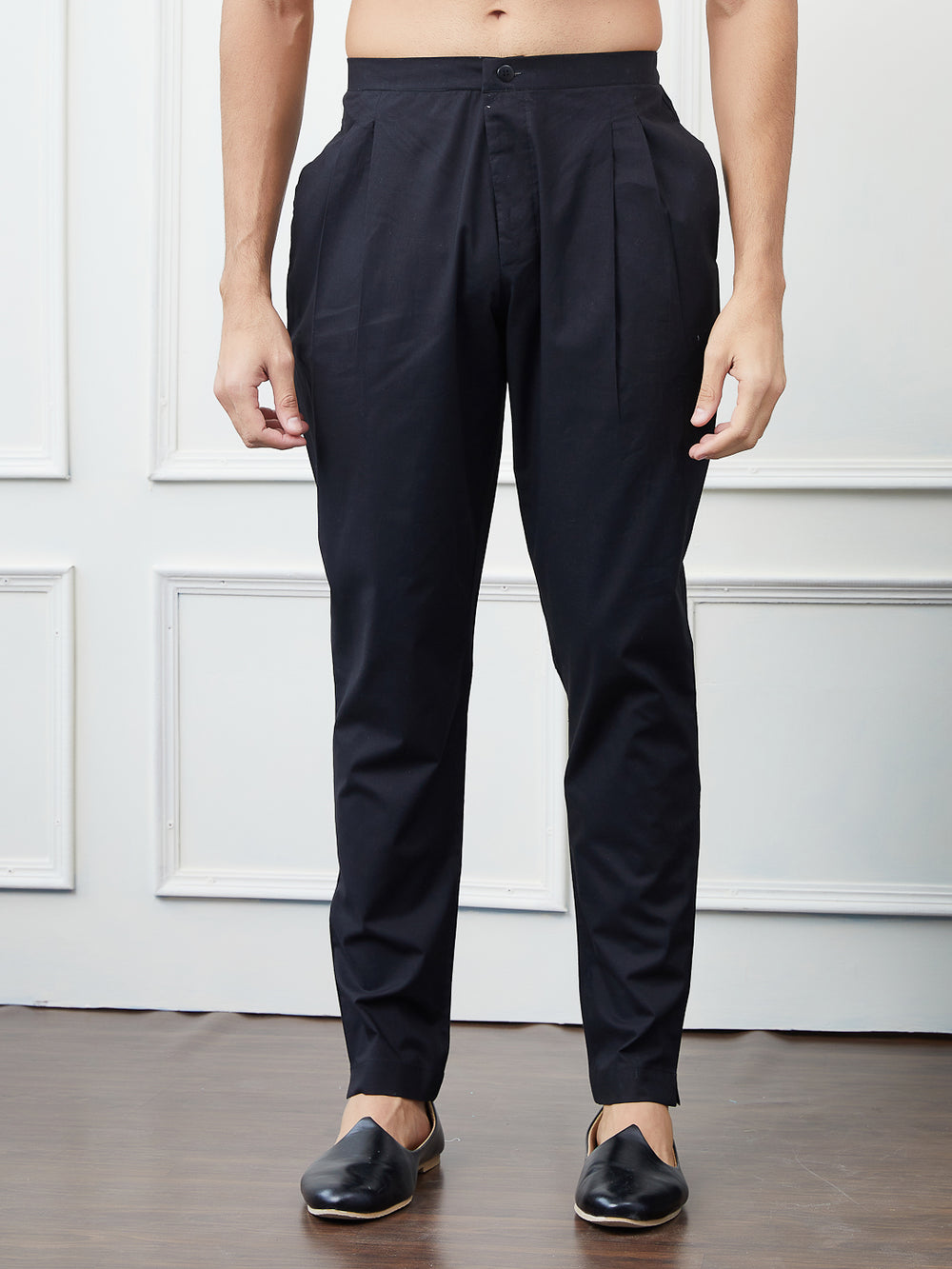 Combo Pack of 2: Black & Cream Solid Cotton Pyjamas