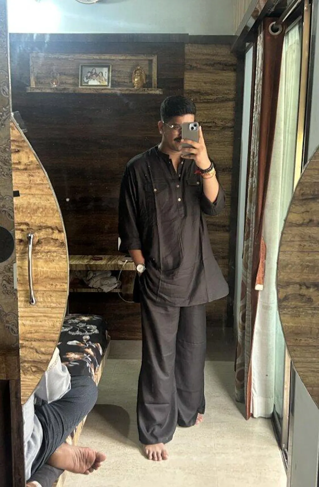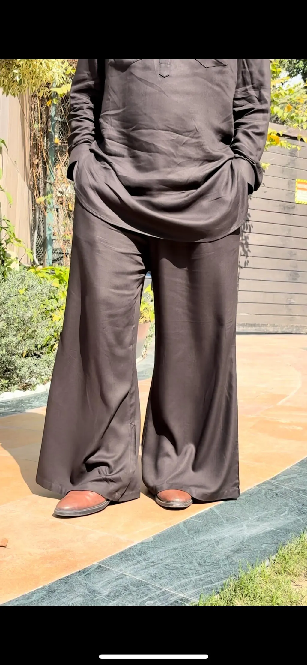 - Sophisticated Silhouette: The wide-leg pyjamas paired with the long-sleeve kurta offer a balanced, masculine frame.