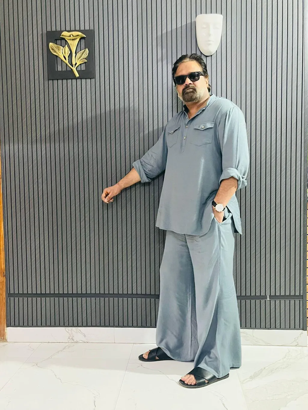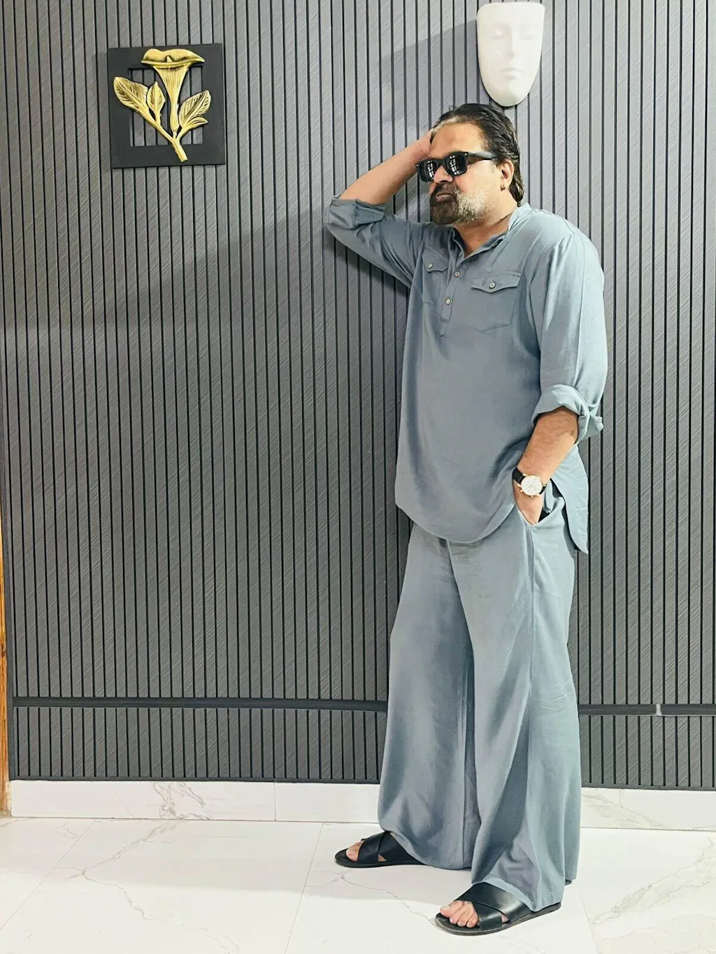Designed with a sophisticated mandarin collar, a sleek concealed button placket, and two functional chest pockets, this set captures the rugged charm of a classic Pathani while maintaining a refined, polished finish. The versatile gray tone offers a modern alternative to traditional palettes—making it an essential staple for the fashion-forward wardrobe.