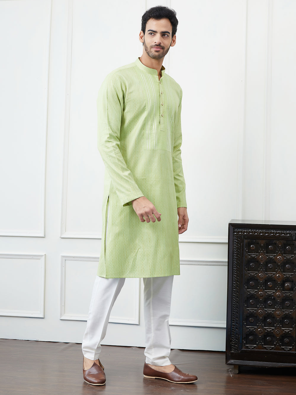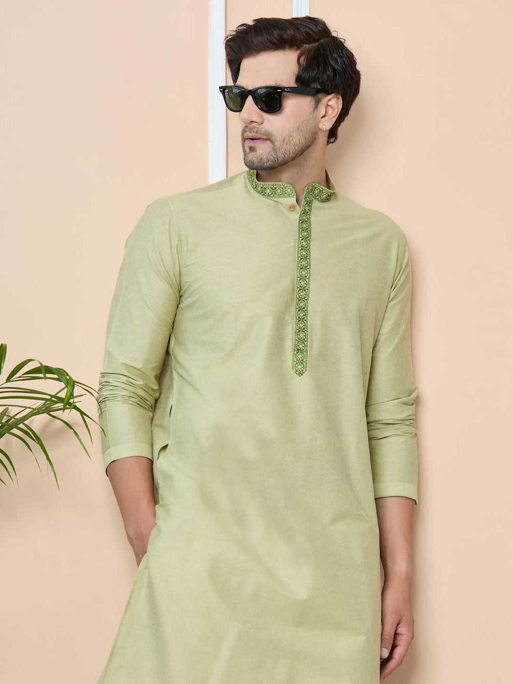 Green Delux Cotton Straight Kurta with Embordered Neck