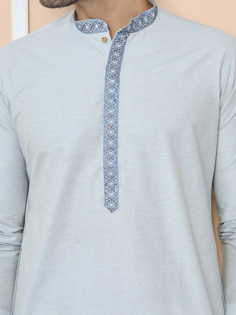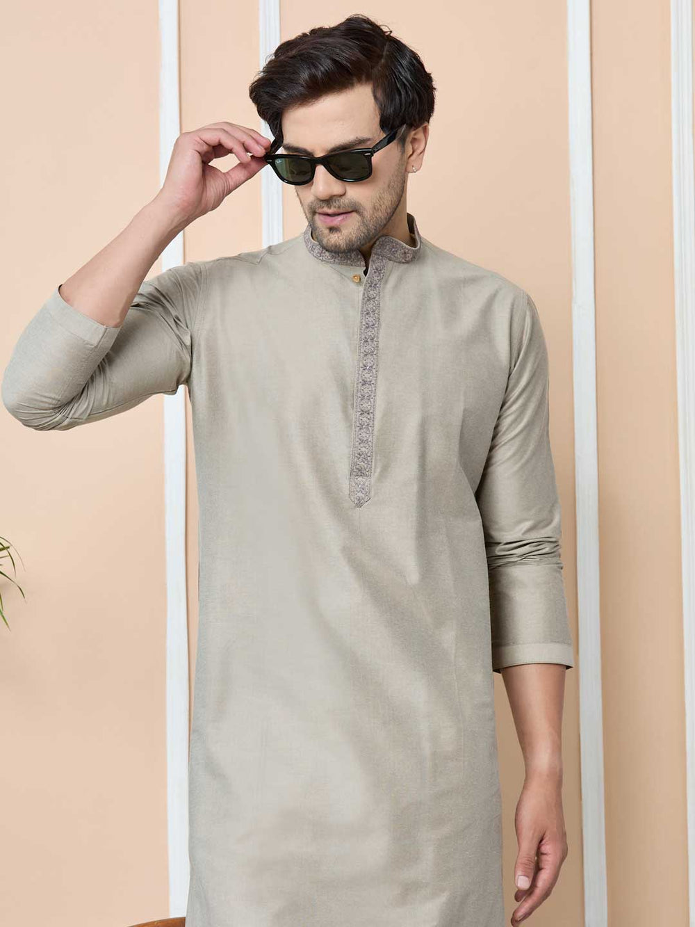 Gray Delux Cotton Straight Kurta with Embordered Neck