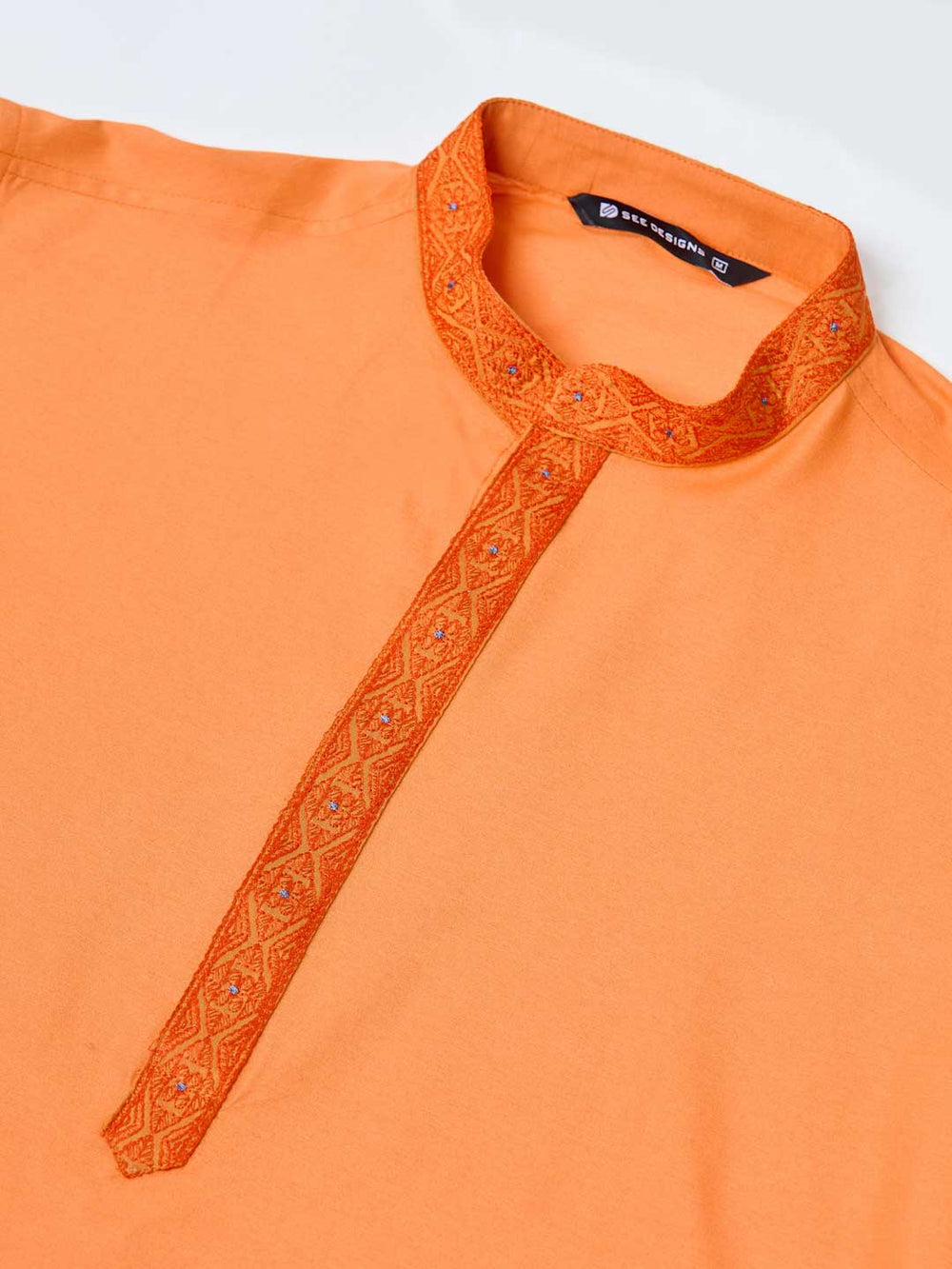 Orange Delux Cotton Straight Kurta with Embordered Neck