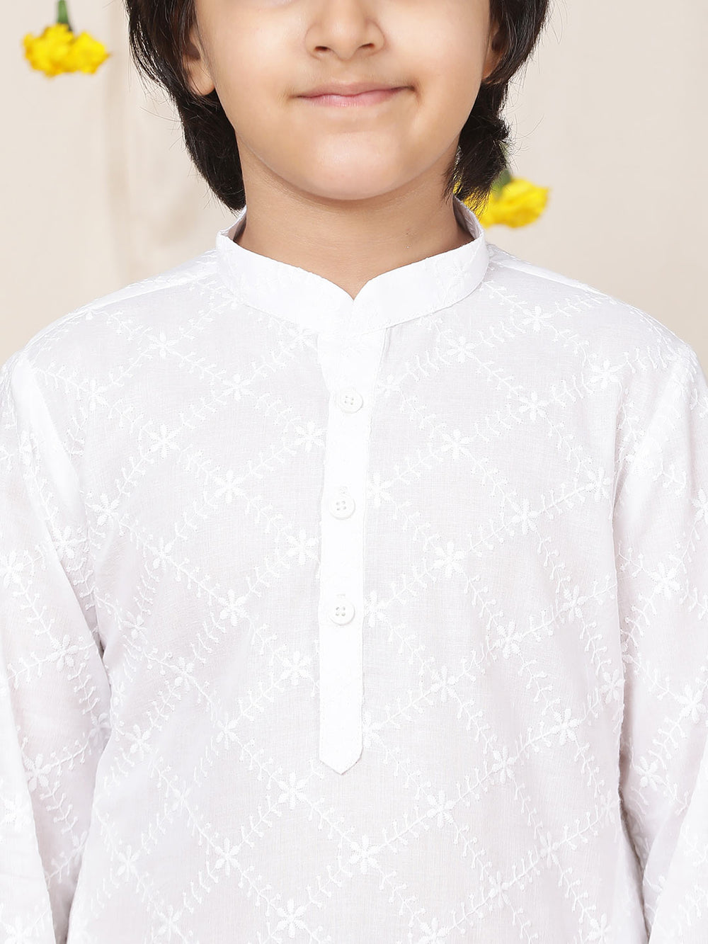 Boy's White Chikankari Embroidered Pure Cotton Straight Kurta