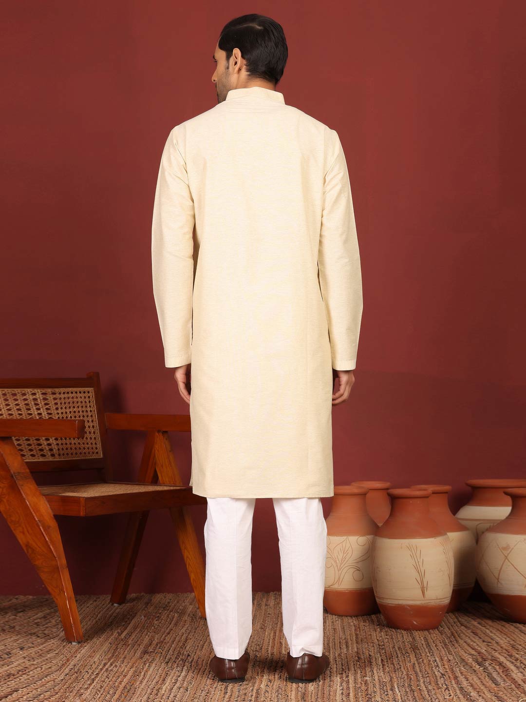 Cream Delux Cotton Solid Straight Kurta