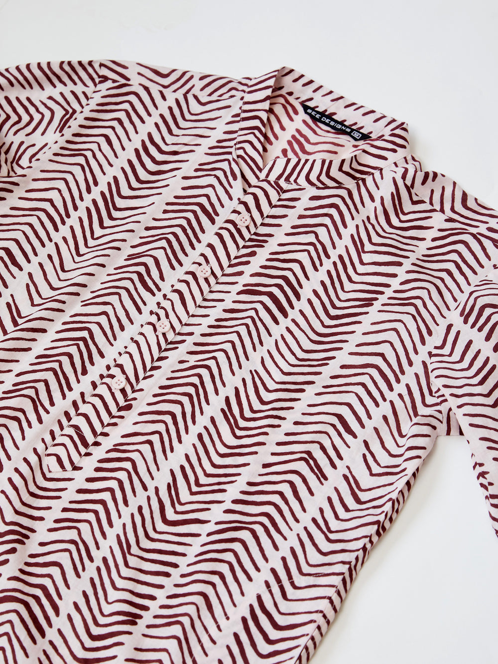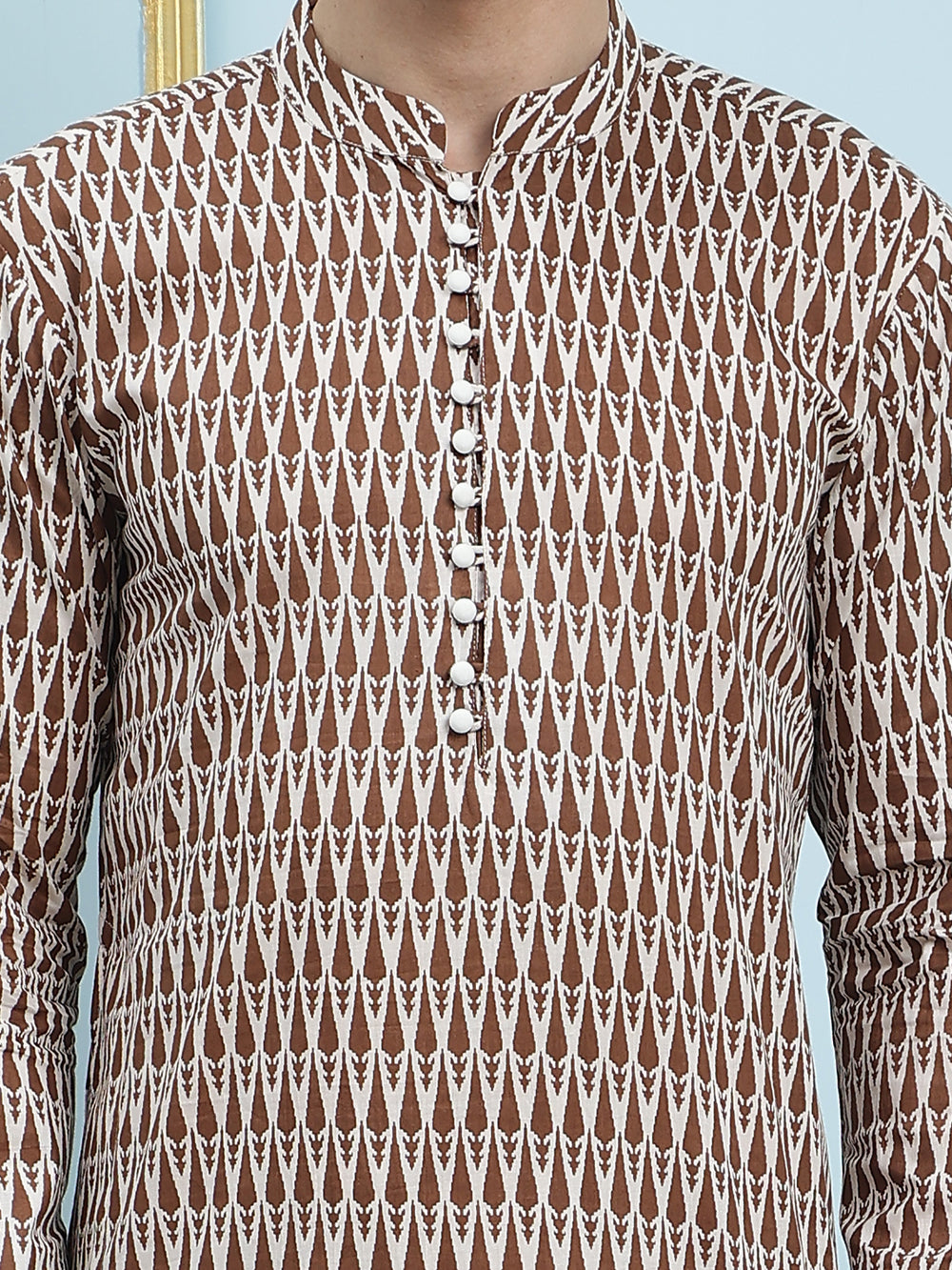 Baby Pink-Brown Printed Pure Cotton Straight Kurta
