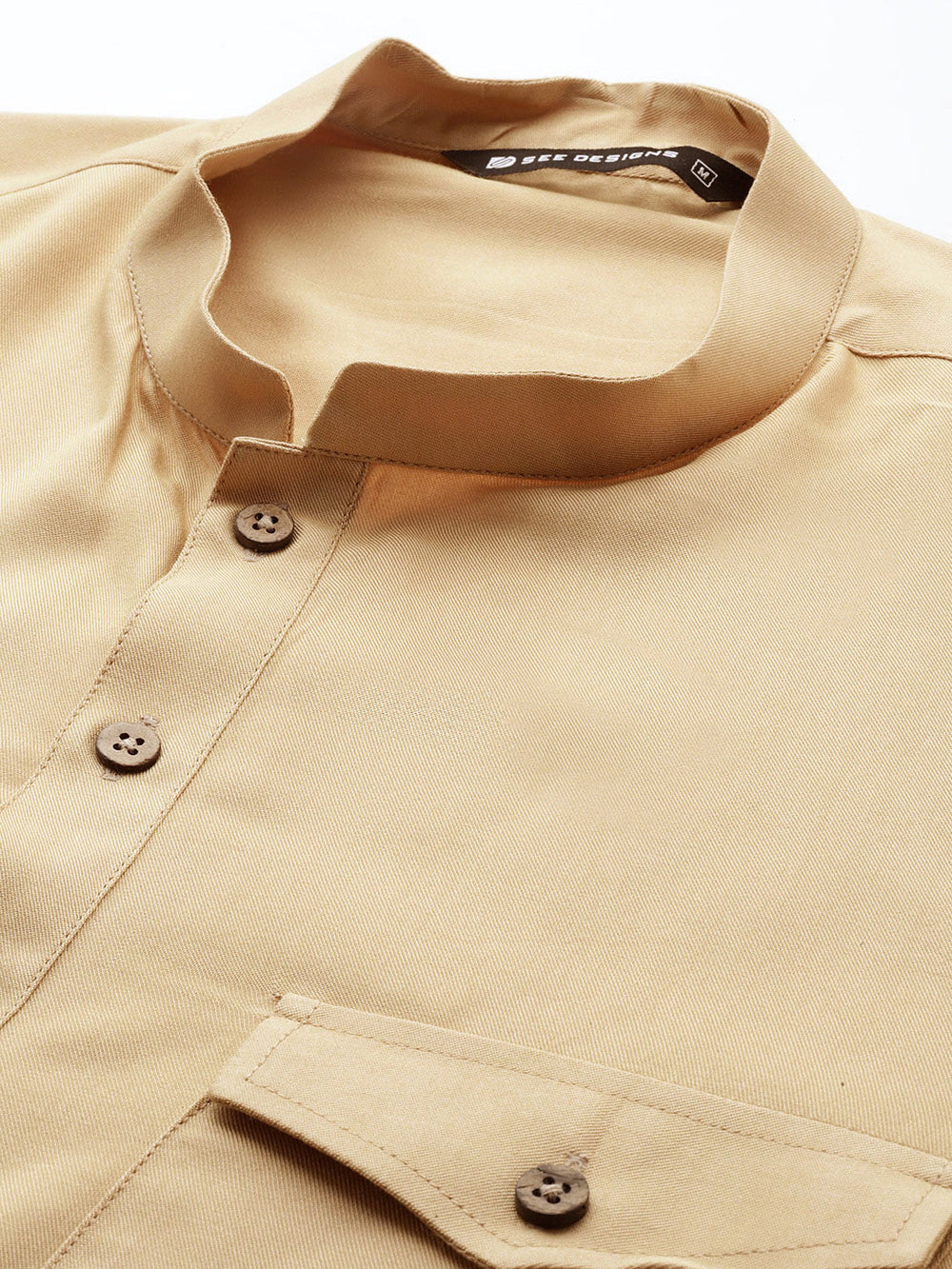 Men's khaki Linen Solid Pathani Co-ord Set
