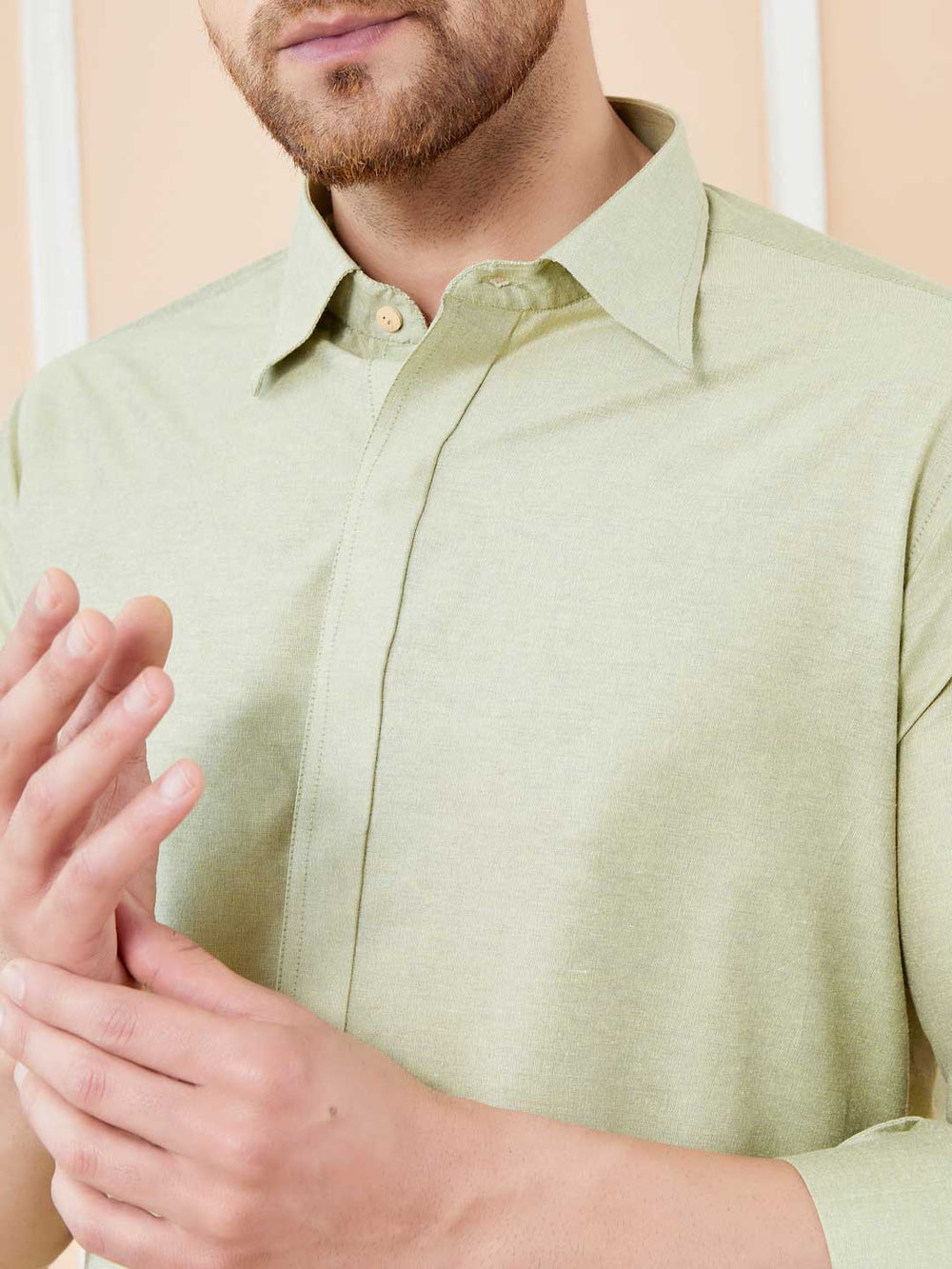 Men's Cream Linen Solid Pathani Co-ord Set