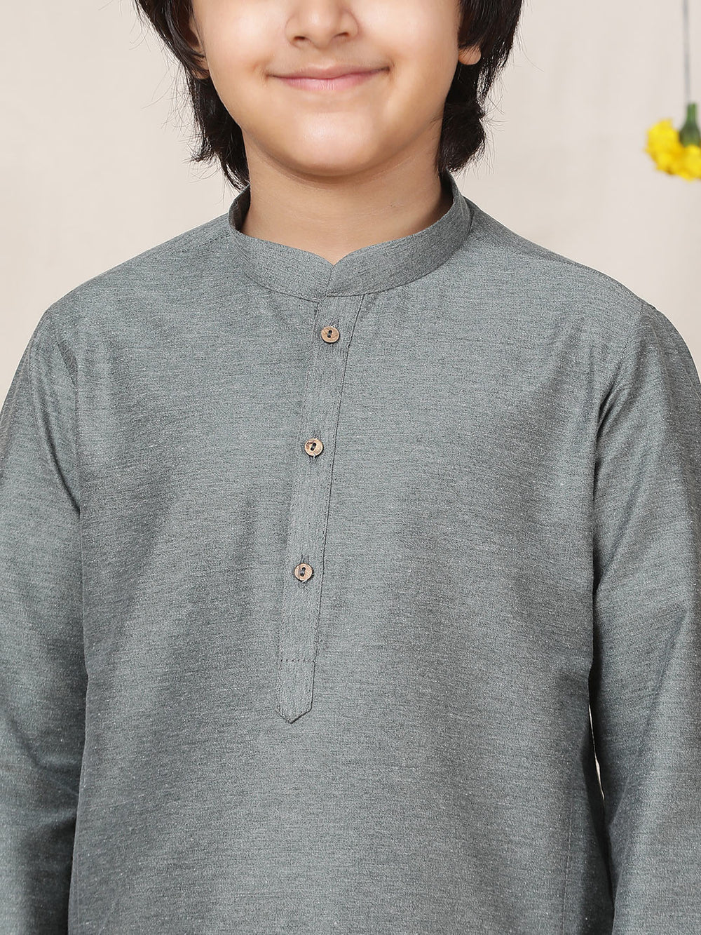 Boy's Dark Gray Solid Cotton Dulux Straight Kurta
