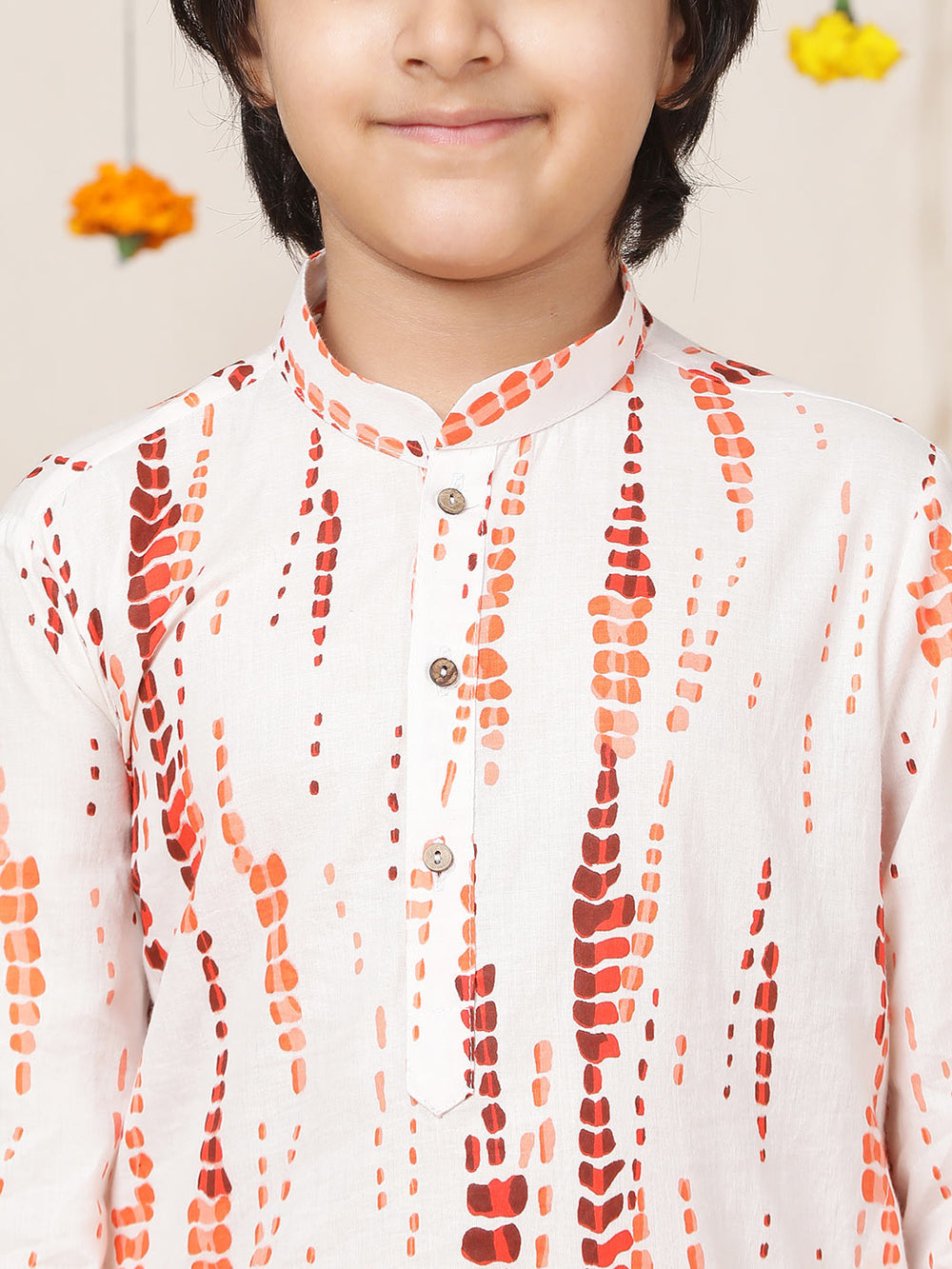 Boy's White & Orange Tie and dye Printed Cotton Straight Kurta