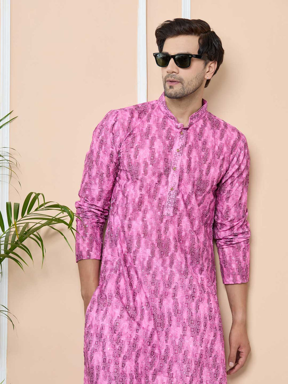 Magenta Tie & Dye Printed & Embroidered Cotton Straight Kurta